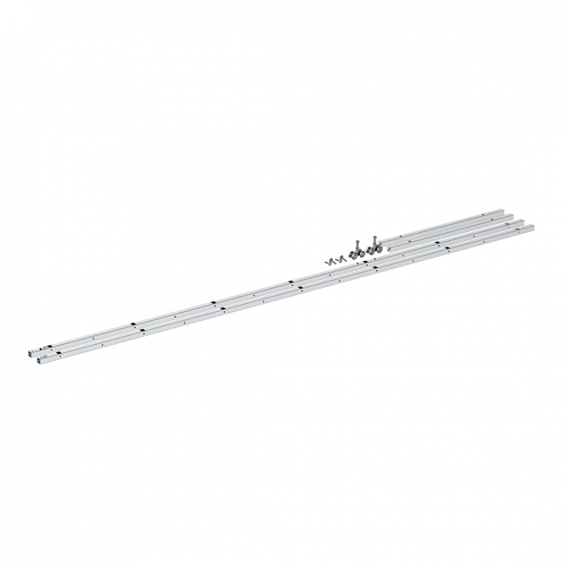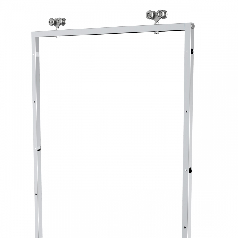 Frame structure with sliding trolleys for track art. 9630; square slots for mounting accessories; M5 threaded insert on the back for wall spacers (art. 9633A or 9633B) or for advertising panels (using the plates art. 8395).