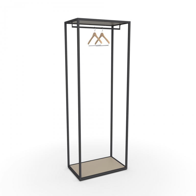 Espositore da terra a n.2 ripiani (venduti separatamente, art. 2506 misura 600x350 mm), con perni reggi-piano per legno o vetro. Possono essere aggiunti altri ripiani (con art. 9689B). Può essere montato su ruote (art. 9695). Le barre appenderia possono essere montate sotto ai ripiani (art. 9690B o 9690D).