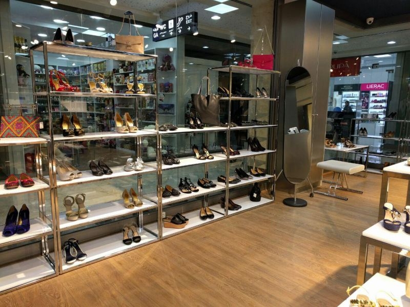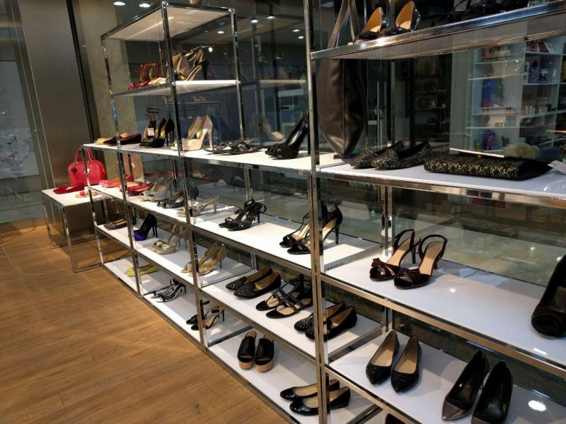 Espositore da terra a n.6 ripiani (venduti separatamente, art. 2507 misura 900x350 mm), con perni reggi-piano per legno o vetro.