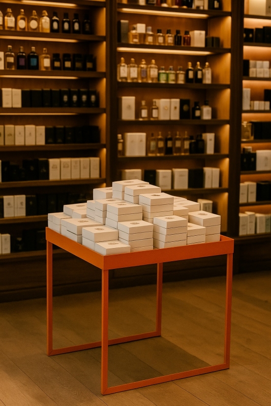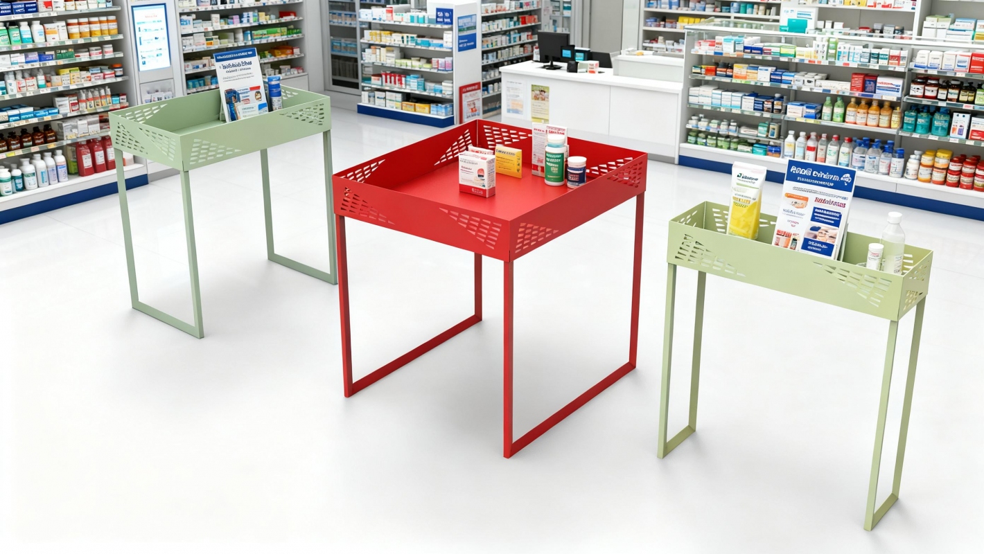 Espositore da banco con ripiano in lamiera