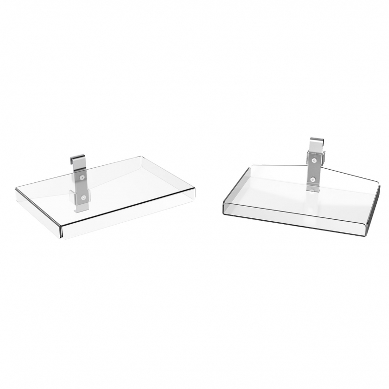 Piano o vaschetta in plexiglass trasparente per esporre merce leggera.