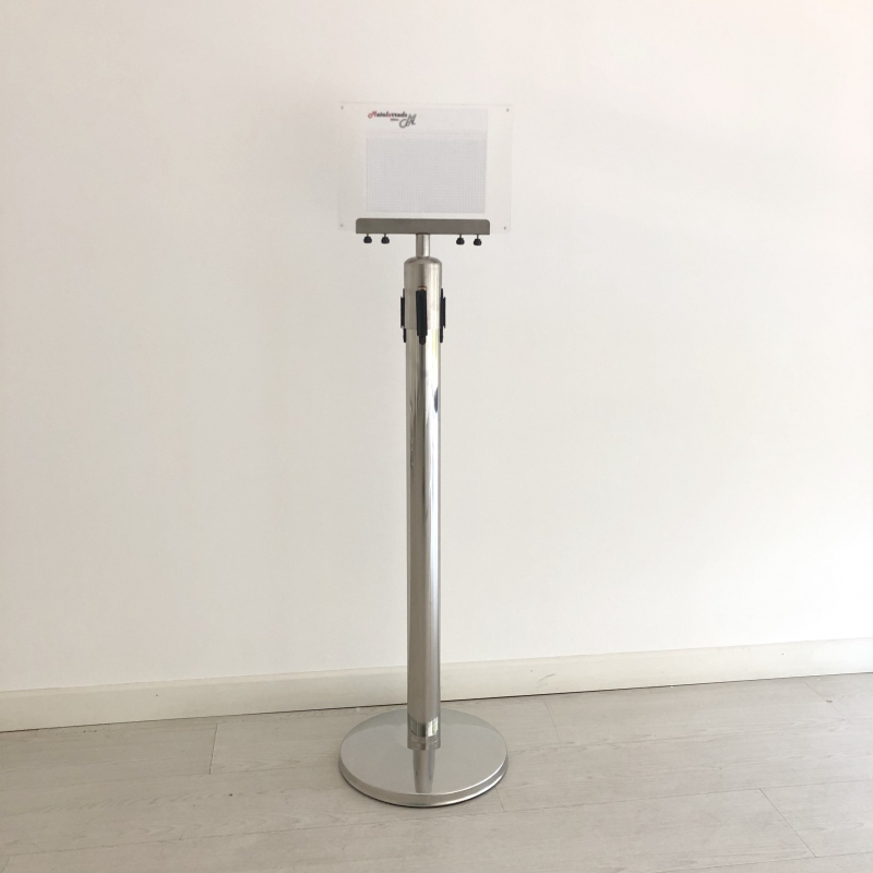 Portacartelli comprensivo di 2 fogli di plexiglass. Dimensioni del plexiglass 300x210x10. La struttura è cromata