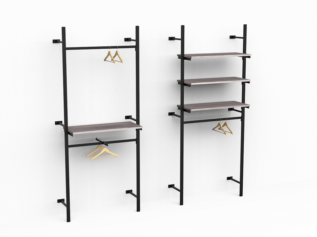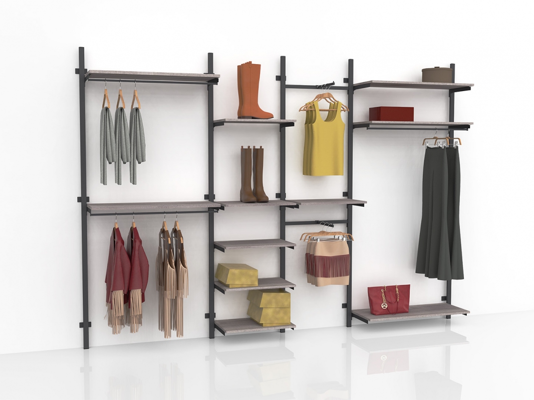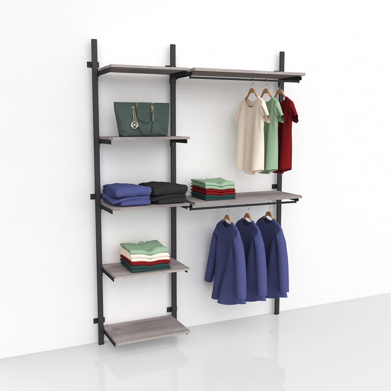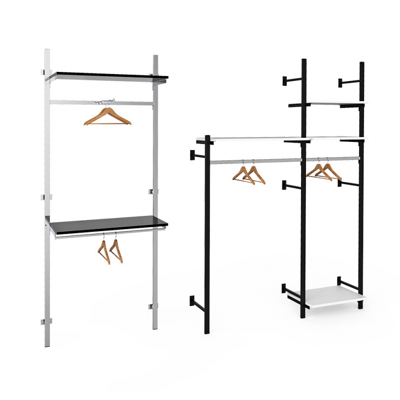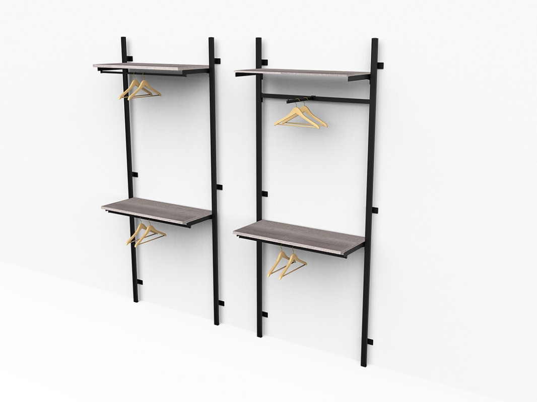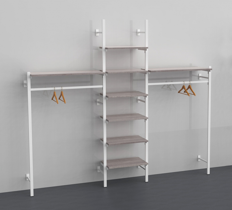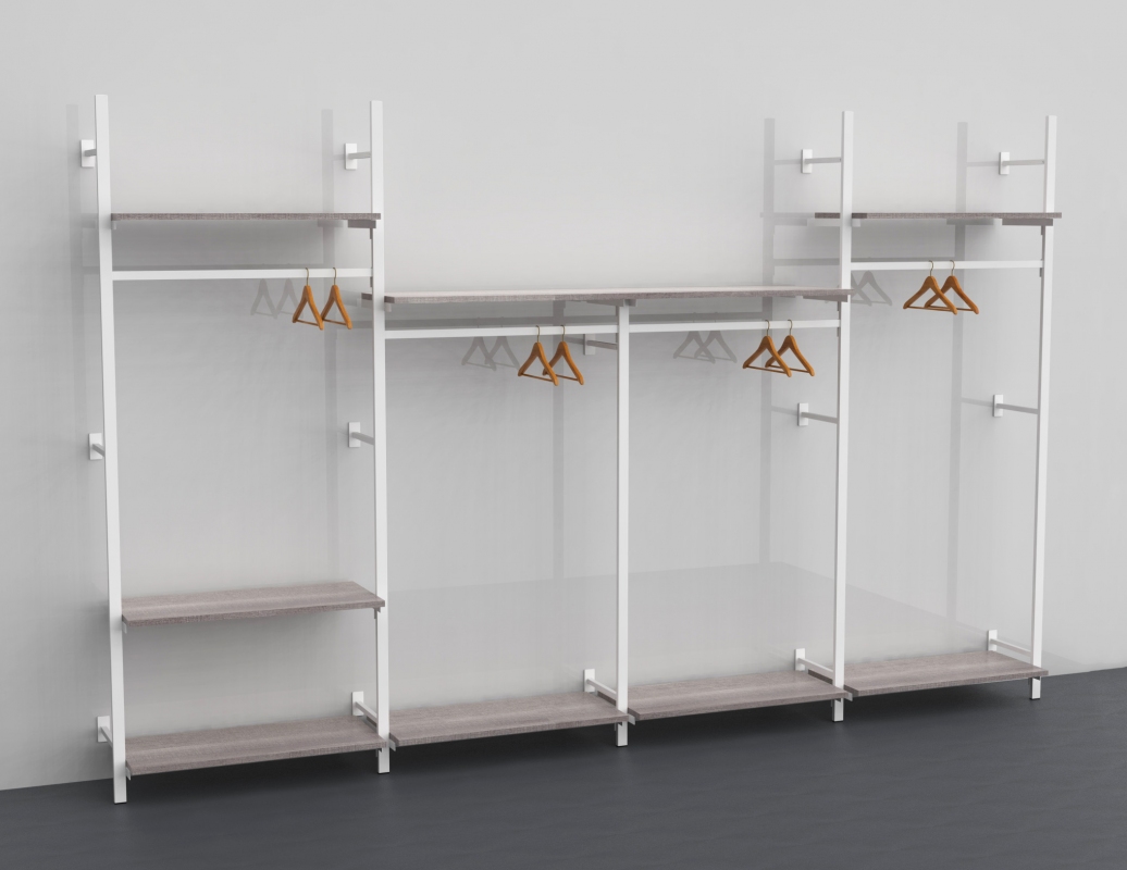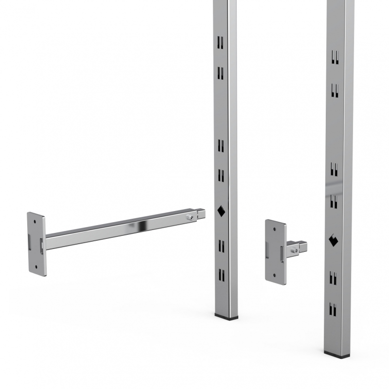 Montante cavettato dietro (doppia cava da 20x5 mm passo 170 mm), predisposto con cave quadre per massimo 3 attacchi a muro (art. 2604 o 2605).