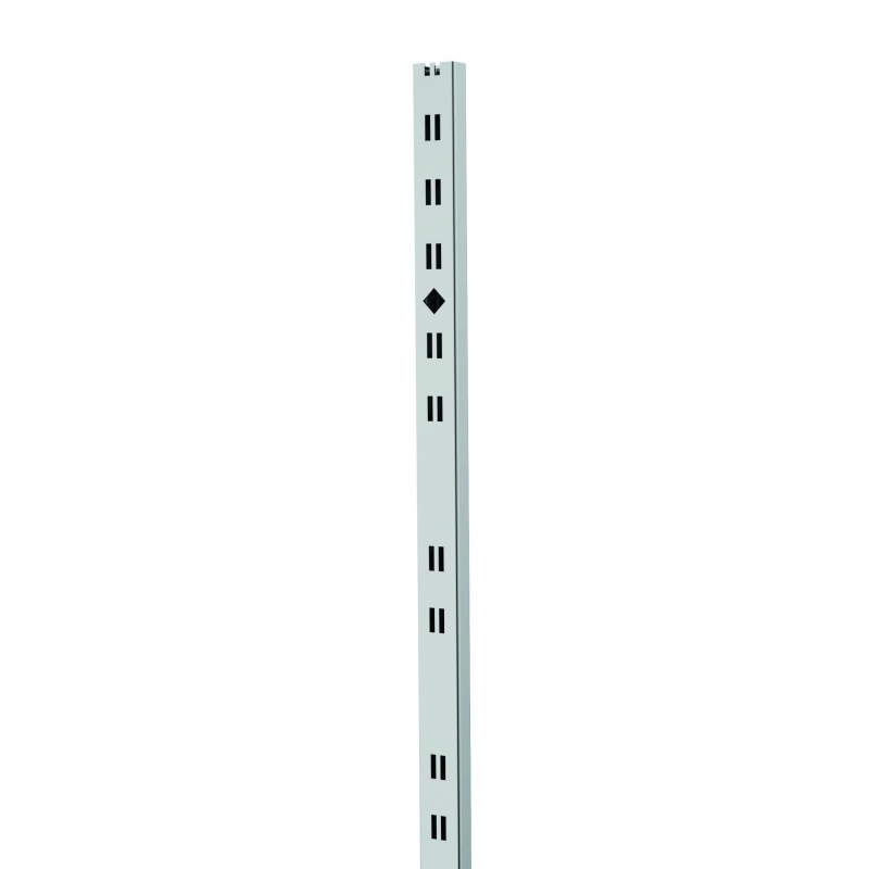 Montante cavettato dietro (doppia cava da 20x5 mm passo 170 mm), predisposto con cave quadre per max 2 attacchi a muro (art. 2604 o 2605).
