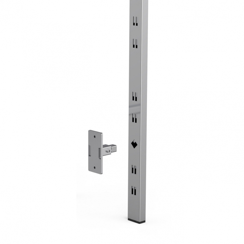 Attacco a muro regolabile per ripiani a sbalzo dal montante, in tubo quadro 20x20 mm.