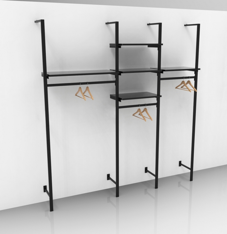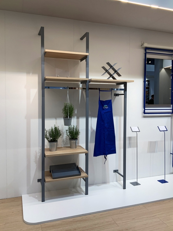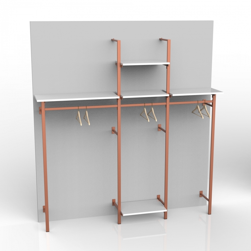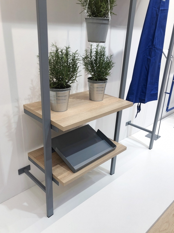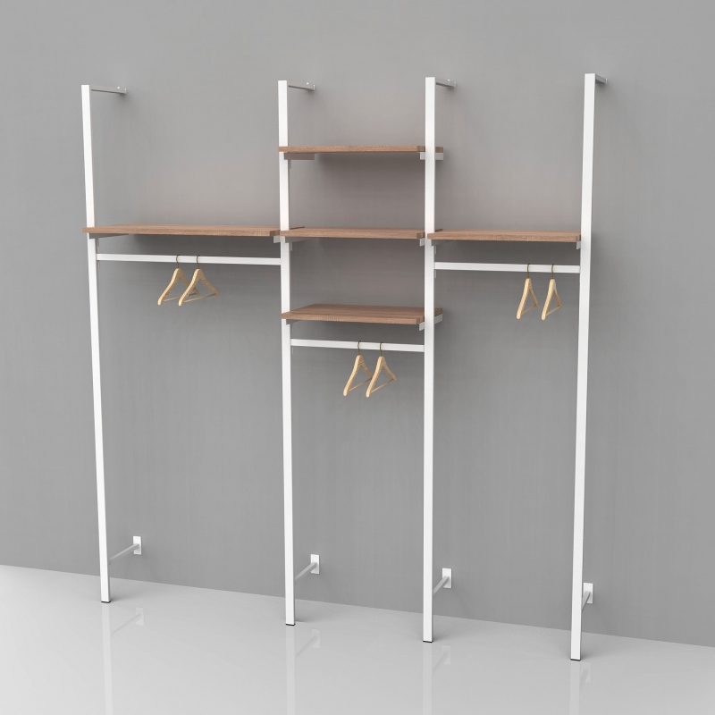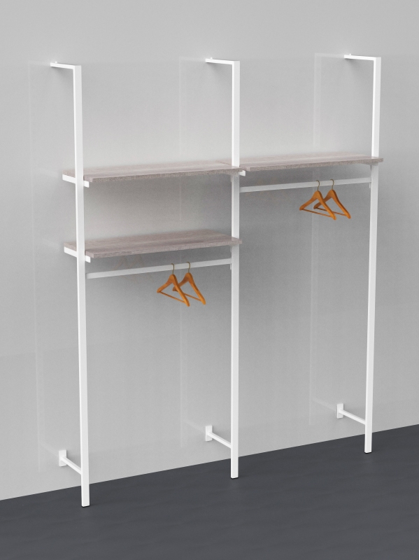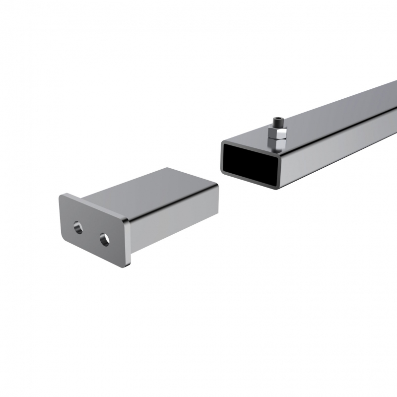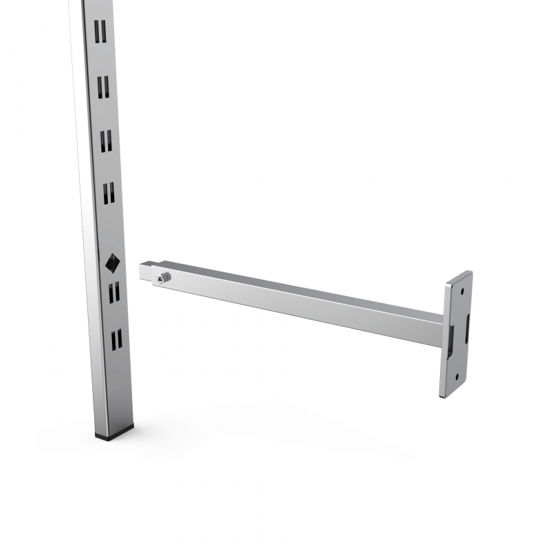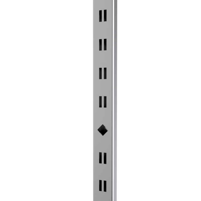 Montante a ‘L’ cavettato dietro passo 50 mm (doppia cava da 20x5 mm passo 50), predisposto con cave quadre per max altri 2 attacchi a muro (art. 2604).