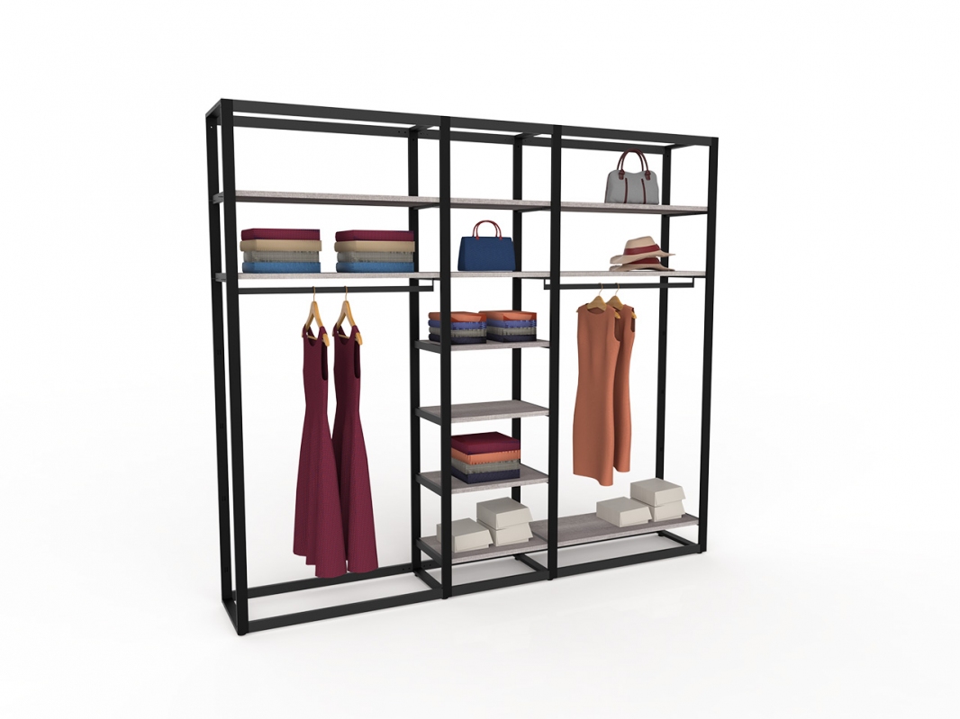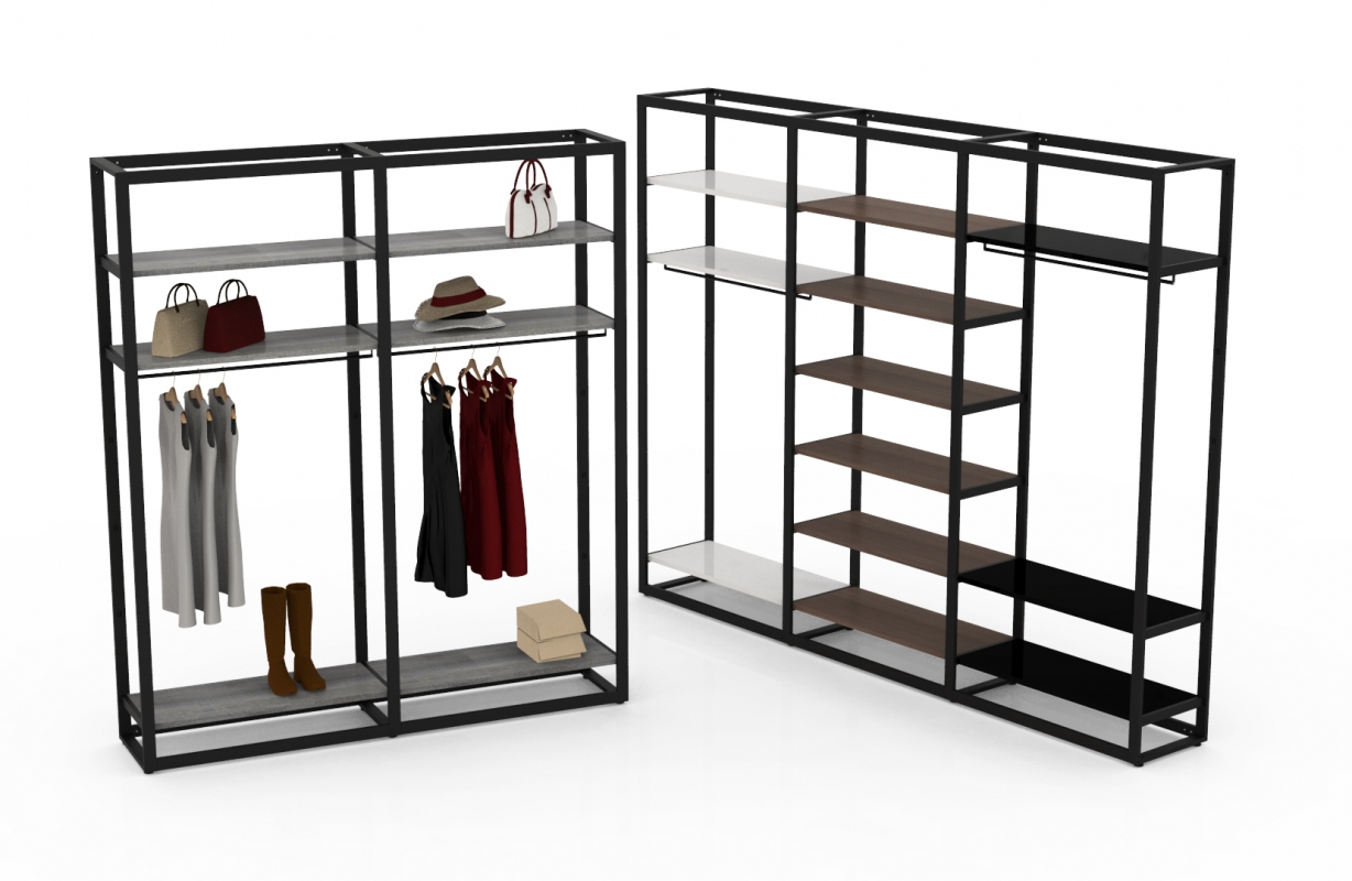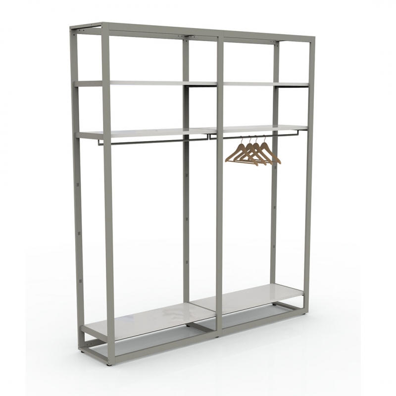 Kit estensione con 1 barra appenderia e 3 mensole centrali per continuità (ripiani art.2501 esclusi); kit fornito smontato completo della ferramenta per montaggio.
